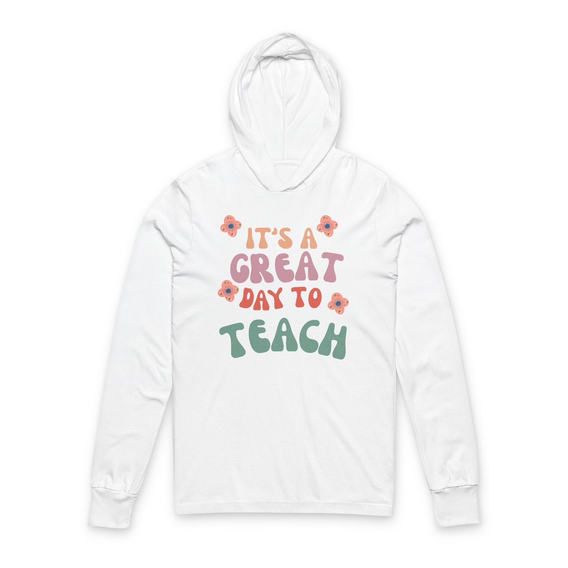 Experience comfort and style with this unisex hooded long sleeve tee. The playful design makes it perfect for educators, bringing a cheerful vibe to any classroom or casual gathering. Ideal for teachers and students alike, this shirt can be worn all year round, but it shines during Teacher Appreciation Week, Back-to-School events, or casual Fridays. The lightweight fabric ensures you stay comfortable, whether you're in class, running errands, or relaxing at home. Embrace every day as a great day to teach, and make a statement with this stylish hooded tee!